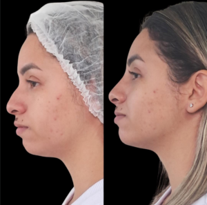 Correção sutil e harmônica do perfil nasal sem cirurgia, com foco em equilíbrio facial e leveza.